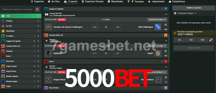 O 5000bet oferece uma grande seleção de opções de apostas em e-sports com probabilidades competitivas